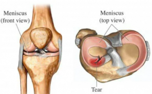 Σε νέους ενήλικες ο μηνίσκος μπορεί να τραυματιστεί μετά από μια στροφική κάκωση του γόνατος σε αθλητικές δραστηριότητες (οξείες ρήξεις)